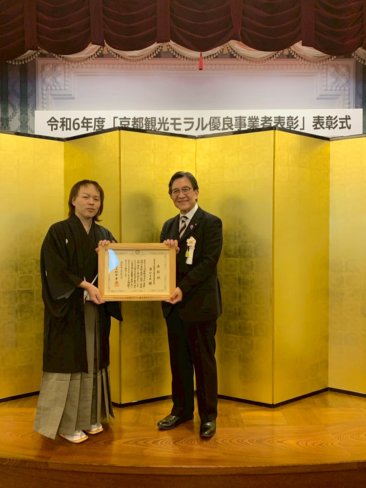 「京都観光モラル」を実践し、持続可能な京都観光を推進する優良事業者として、凜ひとえが表彰されました。 これからも一層、地域の文化とコミュニティを第一に、観光との調和と発展に尽力していきます。